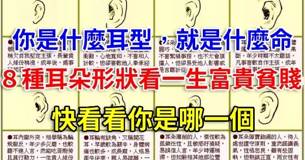 心靈成長 你是什麼耳型,就是什麼命!8種耳朵形狀看一生富貴貧賤!快看看你是哪一個! Jun 12, 2023