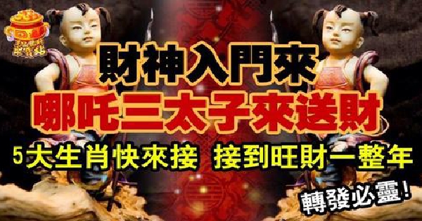 屬虎的人因為命理之中寅木為陽木,陽木有生髮之力,所以屬虎的人運勢很旺,乃是天生大運勢的屬相,而且今年又是生肖虎三合太歲的一年。 財神入門來, 哪吒三太子來送財,生肖虎因命理之中財星高照,催旺了生肖虎的財運,讓生肖虎迎來了大筆橫財, 接到旺財一整年,錢多的花不完。