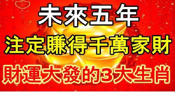 要想取得成功,五年對我們來說足夠了,當然,前提是運氣不錯。有些人奮鬥了大半輩子,也沒做出個所以然來,而有些人只用了短短幾個月,就成了人生贏家,這其中離不開運勢的加持。下面我們就一起來看看未來五年財運大發,賺得千萬家財的三大生肖都有誰吧?