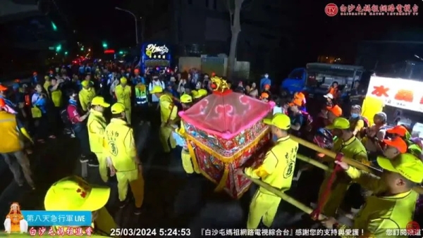 白沙屯媽祖北港進香鑾轎一路疾行,連夜踏上歸程。(圖/翻攝自白沙屯媽祖網路電視台YouTube)