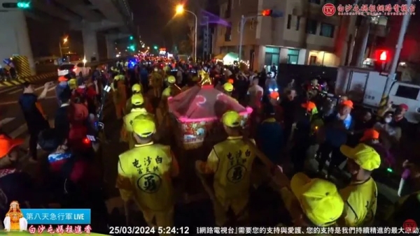白沙屯拱天宮進香活動,預計26日下午2時35分回宮。(圖/翻攝自白沙屯媽祖網路電視台YouTube)