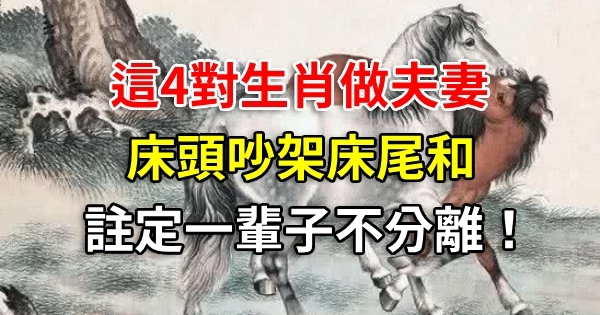 一日夫妻百日恩,夫妻之間相處就像是歡喜冤家,上輩子欠下的情債,這輩子來還,今天我們就一起來看看哪幾對生肖做夫妻,床頭吵架床尾和,註定一輩子不分離?