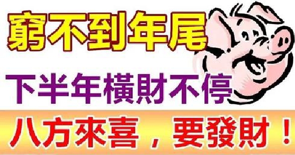 屬豬的人總能好運連連、生活富足。他們心態平和,做事常常事半功倍,輕鬆獲得萬貫之財。而今年更是屬豬人難得的好運年,尤其是下半年他們能有吉星高照、財神相助,喜訊四面八方而來,富貴輕鬆易得。在年底前屬豬人能夠獲得財富自由不說,家庭生活也會更加美滿。在下半年就是屬豬人迎來偏財大運之時,算是熬過了今年的一大難,喜事多得應接不暇,橫財數也數不清,破財運勢與他們毫不沾邊,下半年就能盼得富貴來!