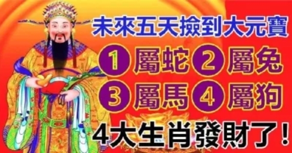 未來五天撿到大元寶,四大生肖發財了