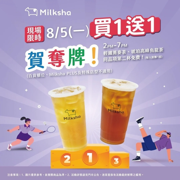 提醒大家,活動優惠僅限門市現場購買適用,恕不適用外送、迷點(外送/自取)及外送平台;百貨櫃位、Milksha PLUS及特殊店型不適用;贈送限同品項且冰/糖度相同,可自付差額加料,恕不配合補價差更換其他品項及兌現;每人限購一組,優惠僅供擇一使用,恕不與點數折扣、VIP九折及其他優惠併用。
