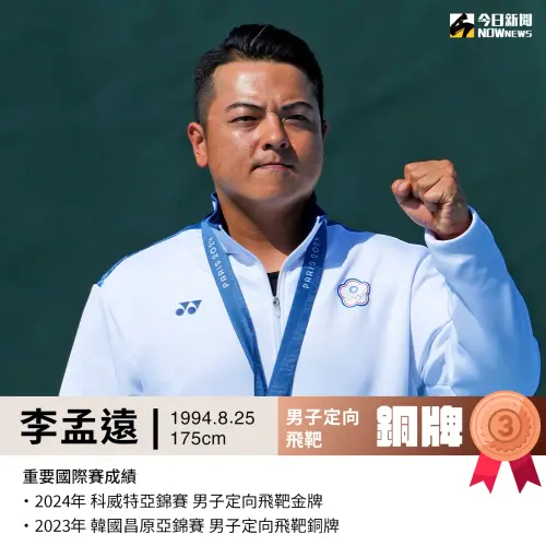 ▲2024巴黎奧運射擊定向飛靶李孟遠小檔案。