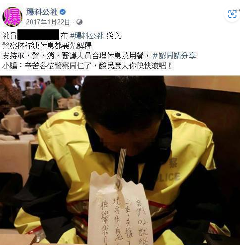 員警除了是人民的保母,需要站出來保護人民外,很多時候還有工作上的各種瑣事要處理, 加上日夜顛倒的執勤時間,有時候真的會累得忙不過來,不過有時候為了勤務的需要,常常會有一些行為,被某些人檢舉,日前就傳出有員警穿著制服買便當,結果被拍照PO網公審的事情,還好警政署跳出來維護,加上其它網友幫忙,最後才讓事情告一段落。