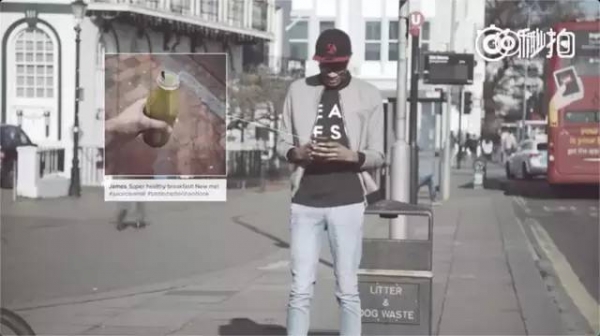 他把新買的蔬菜汁照片更新到自己的社交平台,