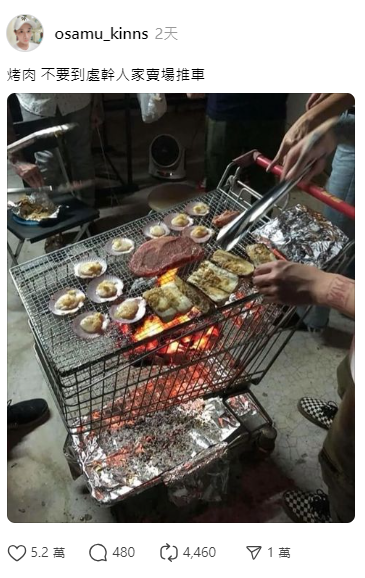 ▲有民眾用賣場推車烤肉。(圖/Threads/osamu_kinns)