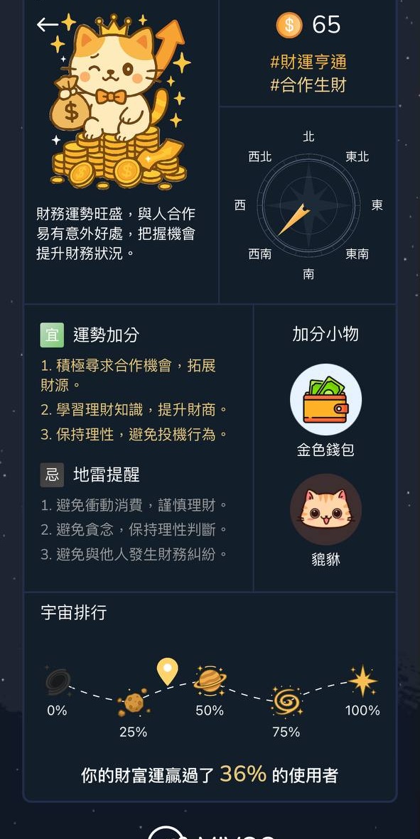 mivoo 提供的「財運能量圖」與避雷提醒,也能幫助他們在做出大筆資金流動時不踩地雷。