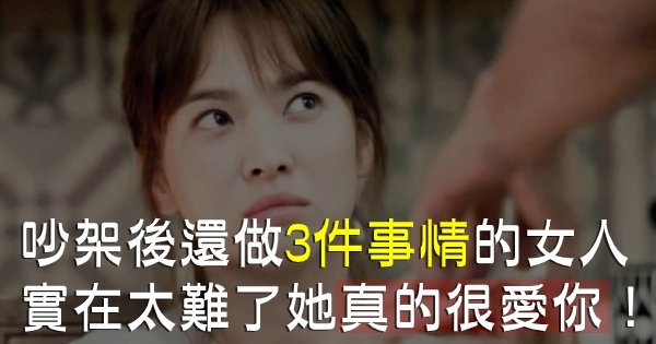 總之,當一個女人吵架後,還不忘記照顧你的請緒,尊重你的感受,體諒你的難處,並且願意主動向你示好,那麼說明她是真的愛你入骨。
