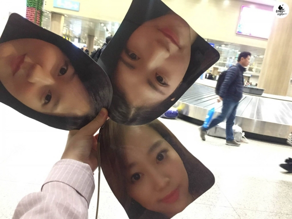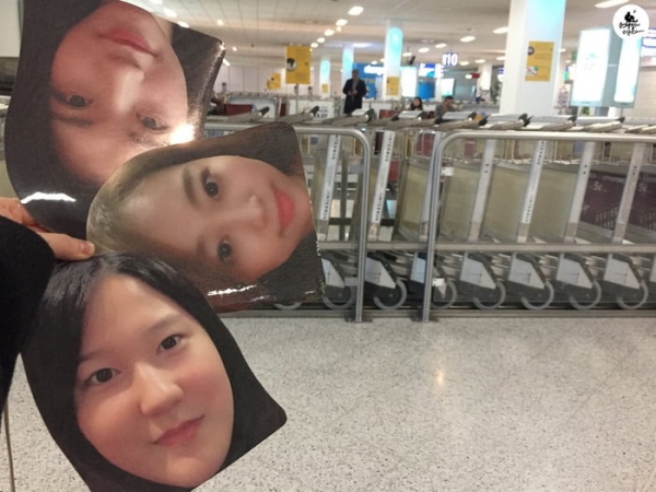 下了飛機後,Soo Yeon也是三位閨蜜的大頭照時刻不離手地拿著~