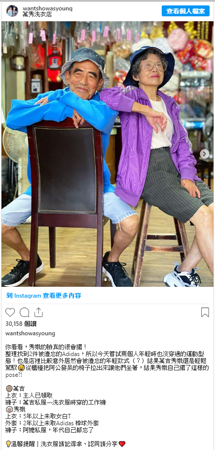 孫子表示,當初之所以想要做這件事,其實只是非常單純覺得阿公阿嬤每天在店裡發呆看起來很無聊,加上家裡剛好堆滿著「客人遺棄沒付錢的衣服」的現成素材,才覺得好像可以替他們兩老做點什麼~萬萬沒想到,竟然意外讓高齡八十幾歲的阿公阿嬤在短時間內就在IG爆紅。