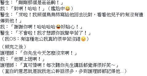 電話掛掉之後,媽媽實在是有夠尷尬,醫生還調侃:「剛剛那個是爸爸齁?」、「來啦!我照個鳥鳥特寫給他回去比對,看看他兒子的有沒有遺傳到他!」沒想到照片公開後,網友全都笑翻了!