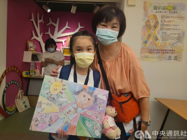 為響應癌症兒童關懷月,中華民國兒童癌症基金會、國民健康署今天上午舉辦記者會,替即將在全台各地登場的「金絲帶小勇士創作畫展」揭開序幕,6名參展的抗癌小勇士帶著作品現身,替抗癌病童打氣。