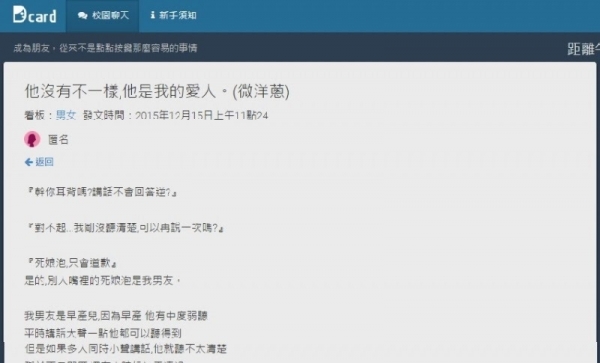 Dcard上的原文: