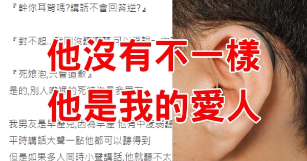 也因為沒有戴助聽器,有時候會漏聽到別人跟他說的話,加上我男友長得比較清秀,常常被同輩的誤會耍大牌、不理人、娘泡等...