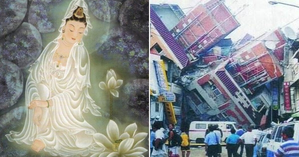 這時,他摸摸身旁,嚇了一跳,牆壁傾斜,他正處在中間的小空隙中。由於平日篤信佛法,鍾先生馬上想到:「剛剛一定是菩薩來救我!」於是端坐起來,就在牆與地之間的小縫中專心念佛。