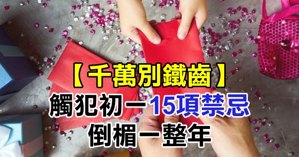 春節連假開啟,尤其是每年農曆春節,總是許多祖先留傳下來的禁忌,尤其是初一更是多達15項禁忌不能做,其中像是不能睡懶覺、不可以叫人名字起床或是動剪刀等,不然就會招來一整年窮氣或是衰運。