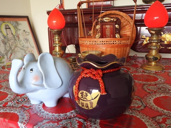 他們就只會將現金存進擺在供桌上的存錢筒,