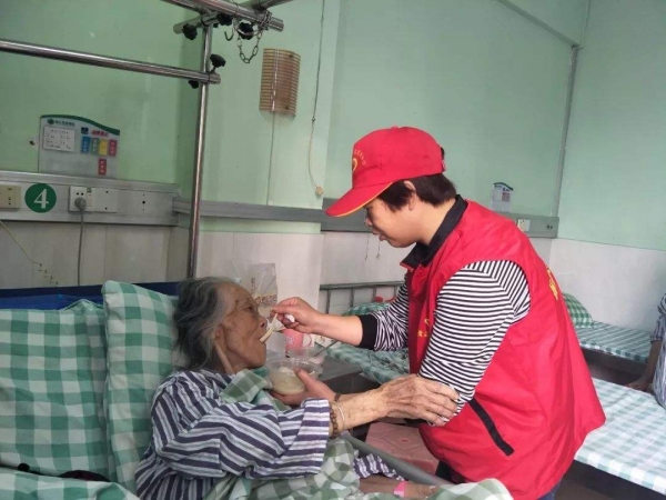 照顧者會細心地、慢慢地進行餵食,