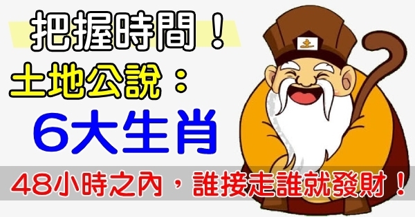 48小時之內,土地公說:這「6大」生肖快接財阿!