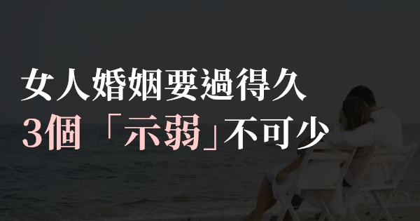 張愛玲曾說過:「善於低頭的女人,是厲害的女人。」而這句話,應用在兩性得相處,更為貼切,一段婚姻要維持穩定,要走得長久,女人要懂得適時「示弱」,可以說,婚姻的智慧,需要女人用寬容和愛心,以示弱的方式演繹,這樣的婚姻才能長久,相反的,若是婚姻中的兩人時常硬碰硬,總是瀰漫著劍拔弩張的氣氛,這樣的婚姻是無法細水長流的!