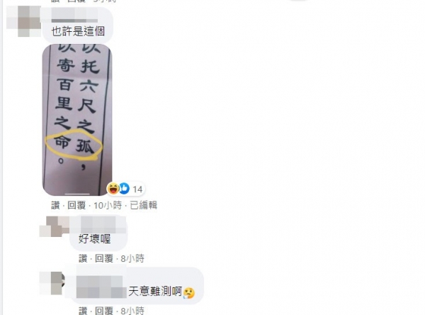 除此之外,也有網友看了籤詩之後立刻圈出重點,並湊巧發現出現了「孤命」兩個字,因此留言說道「也許是這個…」,也讓不少網友紛紛笑到「好壞喔」、「解籤達人」!但也有人幫原Po認真解籤,並表示:「有對象這張籤才有用,你單身狗這張用不上」