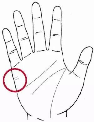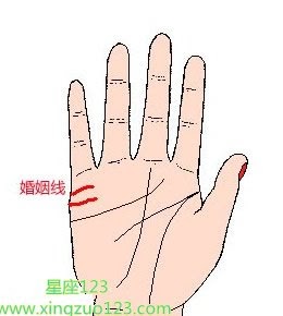 在小指根部掌邊,感情線上方,所刻劃出的短短橫線,就是婚姻線。