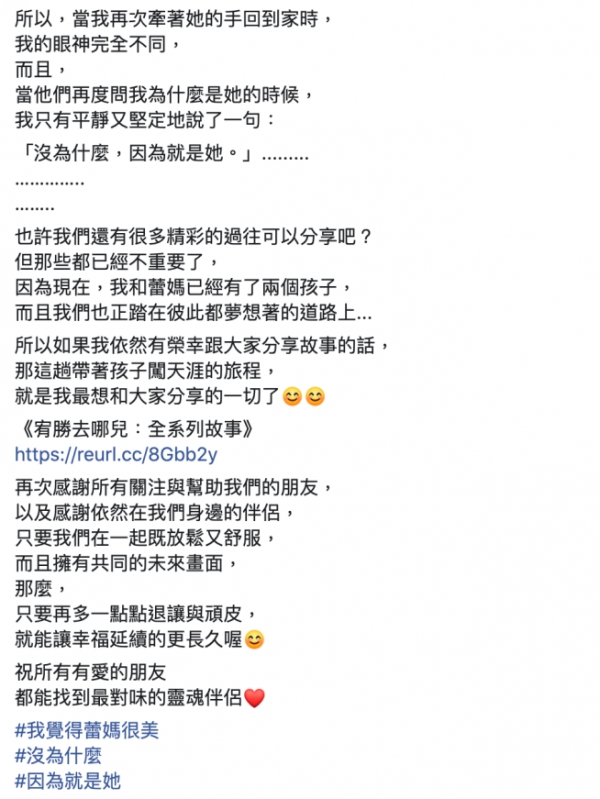 願兩人繼續自由人生,過嚮往的生活♥️」