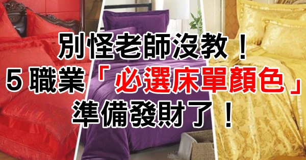 許多人在挑選床單時,會依照喜愛的顏色、房間布置風格來挑選,不過命理專家李行表示,床單顏色恐影響人生運勢,5大工作族群選床單,皆有不同對應的色系,如果選錯了,恐怕會愈睡睡窮,讓你口袋空空,反之,選對完美床單顏色,就可準備發財了。