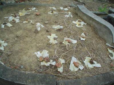 再燒銀紙等給祖靈,紙錢燒完後,在紙灰上灑酒(稱為奠酒),最後鳴炮禮成。
