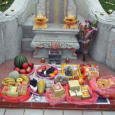 若為新墳,則必須供奉五牲(如豬頭、雞、鴨蛋、麵粿、紅龜粿),