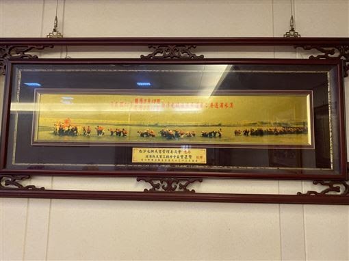 ▲拱天宮白沙屯媽祖領2百人撩溪「走水路」,至今照片仍懸掛在拱天宮內。(圖/翻攝自拱天宮粉專)