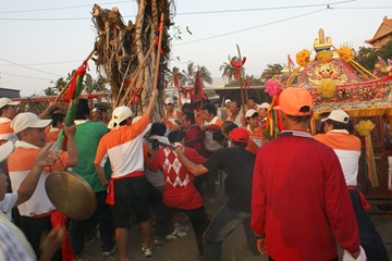 5時許,媽祖婆主動發動第一波攻勢,以尚方寶劍、油鍋和烈火收拾廢棄碉堡旁三棵榕樹上的野鬼。