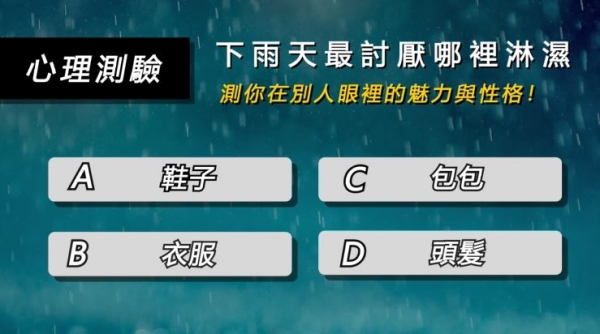 註:心理測試僅供一定的參考,三分天註定,七分靠自己!祝大家開心幸福發大財!