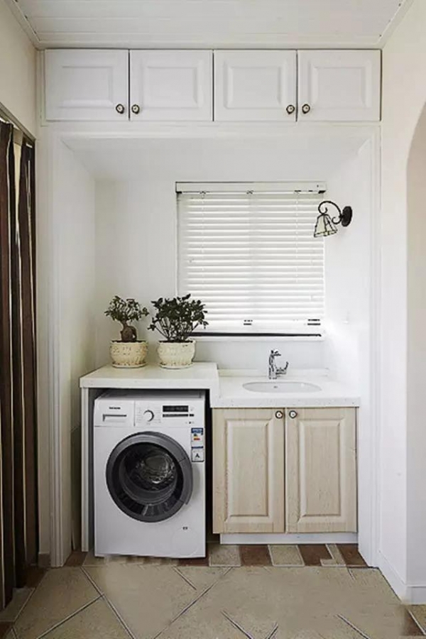 如果衛生間太小,無法擺放洗衣機,可退而求其次,將洗衣機擺放在陽台。