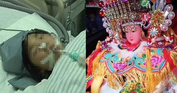 緊握著廟婆的手喊「我女兒醒了,我女兒終於醒了!」,