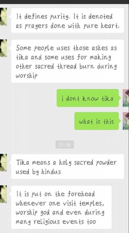 他告訴我,沉香香灰或者其他粉末作為提卡,提卡是印度教徒使用的一種神聖粉末,每當人們去寺廟,拜神,甚至在許多宗教活動中,它都被放在額頭上,以示高貴,像神靈表達自己虔誠祈求祝福,祈求長生。他們認為香灰是神的旨意,是聖火的結晶。