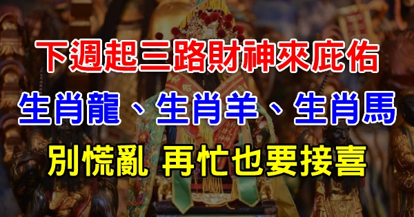 在過去的幾個月裡,生肖龍的運勢一直偏於平穩,沒有什麽大的進展,這對於想要上進的生肖龍來說可是一個災難,好在自下周起,生肖龍迎來財神的庇佑,所以可以適當放下手中的工作,一起來接福吧。