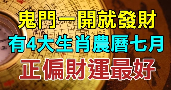看生肖運勢就要看農歷,那麼農歷七月哪些生肖的財運好到爆?這4大生肖,你們的財運在七月可謂是滾滾而來。那麼,我們就一起來看看,農曆七月有哪些人偏財運旺,會有天降橫財呢?