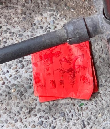 沒想到文章曝光後,隔天紅包就被一名年輕男子撿走了,引起不少網友熱議,紛紛表示,「撿了馬上有人出來叫你姐夫」、「投進功德箱 vip超度通道」、「說不定他是要過運的」、「我之前也在我店門口看到一個紅包,用筷子夾開看裡面裝了抹草、芙蓉之類的東西,我也不敢亂撿」。