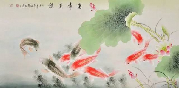 四、招財的字畫:眾魚嬉水圖