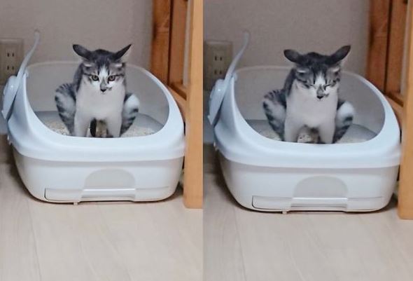 喵喵解鎖新姿勢了!一名日本推特網友「0707_Shisyamo」近日推文分享家中貓咪上廁所的奇耙姿勢,照片讓網友們都笑翻,直呼「是在相撲嗎?」