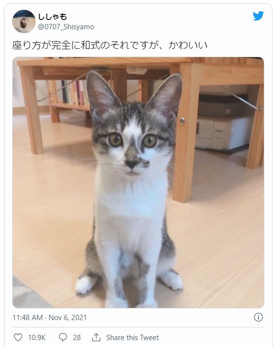 照片主人是隻叫做「Shishamo(ししゃも)」的小貓,7月才剛出生,被推主與室友撿到時才出生不到兩天,兩個人將牠帶回家輪流照顧,目前Shishamo已經4個月大了,牠也因為從睜開眼就一直與人類在一起,所以相當黏人。
