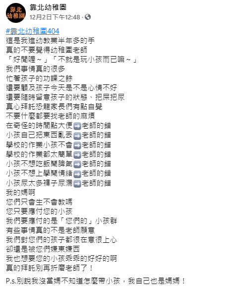 「幼兒園老師真的是最辛苦的...」