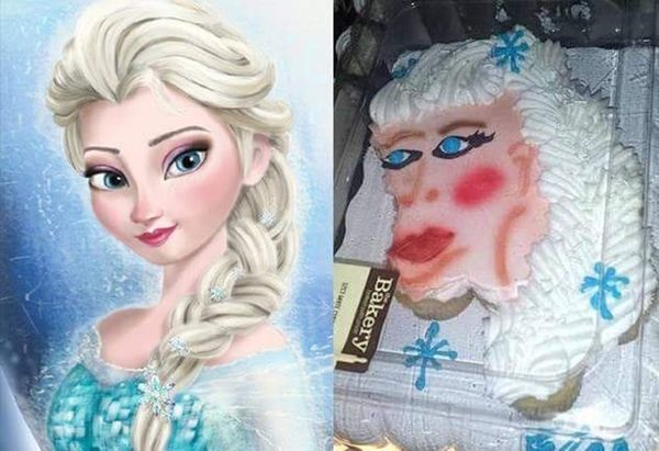 訂購的東西與照片不符,甚至變形到可以嚇人,真的會讓買家很生氣。一名男網友日前在臉書「爆廢公社」分享一張對比照,有業者把人氣動畫《冰雪奇緣》主角艾莎的頭像做成蛋糕,但成品卻變成一個「人猿」,讓他不禁感嘆「店家做這樣給你,你會砸老闆的臉嗎」。