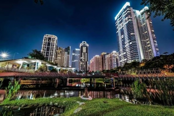 公園的四周圍繞著各式高樓,有一種世外桃源的愜意氛圍,到了夜晚湖面映著高樓的燈火,有別於從遠方俯瞰萬家燈火,是另一種感受,在公園裡漫步也能享受閃閃動人的絕美夜景!