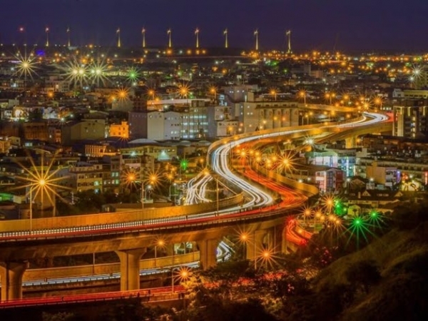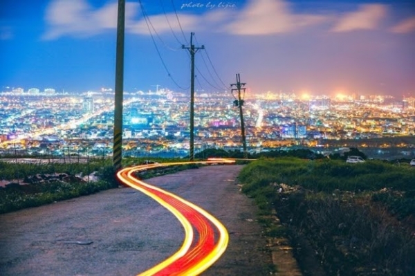 夜晚時路燈亮起,還有陸橋下的來車,而你就站在橋上欣賞腳下及遠方迷人的夜色,別有一番風味啊~