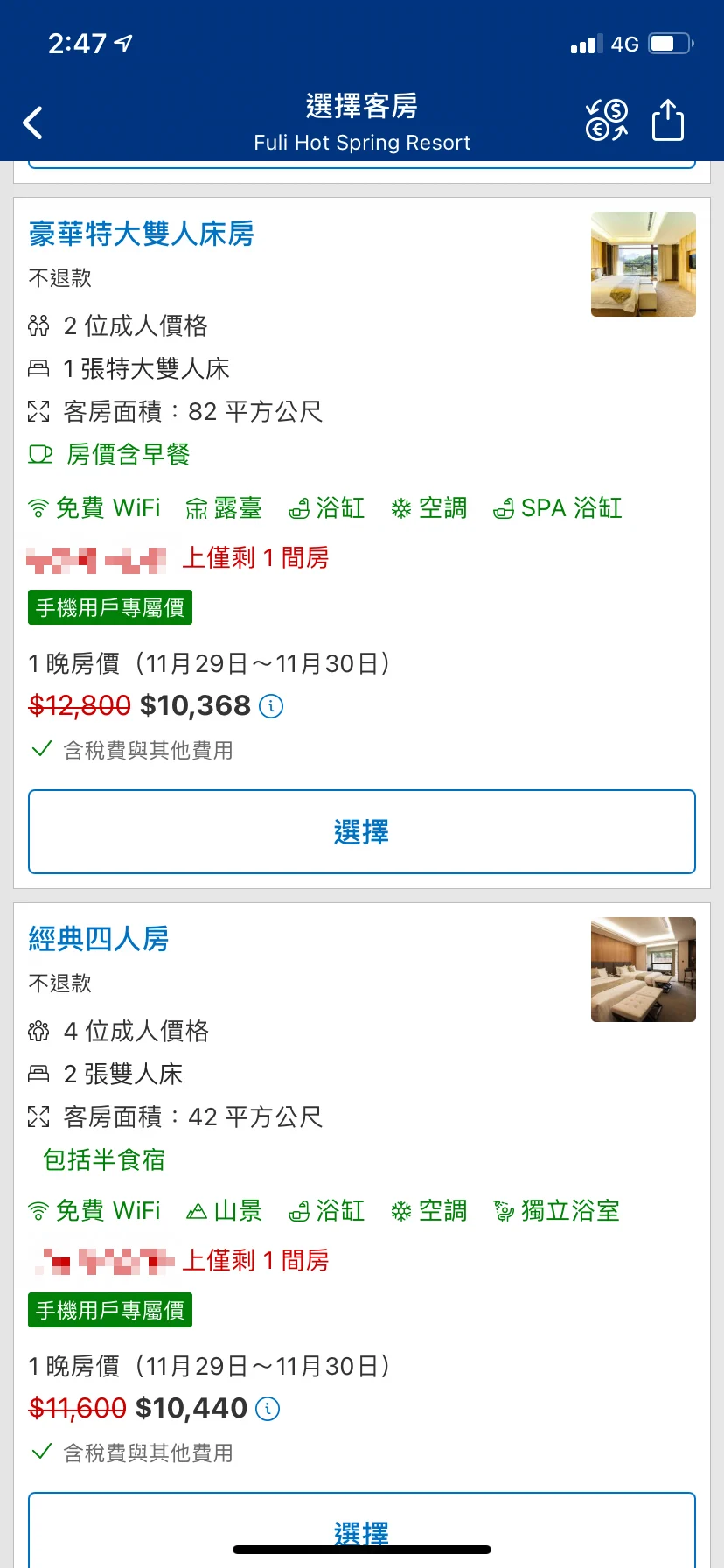 經實際查詢該飯店房價,房價已變回一個晚上1萬2800元、預訂金額則為1萬368元,且不退款。